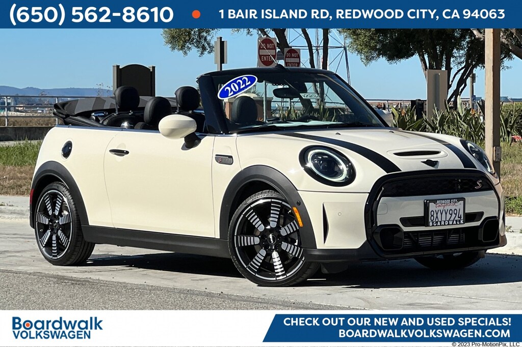 CARFAX One-Owner. Clean CARFAX. Pepper White 2022 MINI Cooper S Iconic FWD 7-Speed Automatic 2.0L I4 DOHC Advanced Real-Time Traffic Information, Apple CarPlay Compatibility, Auto-Dimming Rear-View Mirror, Body Color Mirror Caps, Comfort Access Keyless Entry, Concierge Services, ConnectedDrive Services, Convertible Wind Deflector, Driver Assistance Package, Dual Zone Auto Climate Control, Dynamic Digital Instrument Cluster, harman/kardon® Logic 7® Digital Surround, Heated Front Seats, Heated Steering Wheel, Iconic Trim, Leather Cross Punch Upholstery, Media Display, MINI Assist eCall, MINI Connected, MINI Connected XL, MINI Head-Up Display, MINI Navigation, MINI TeleServices, Nappa Leather Steering Wheel, Parking Assistant, Piano Black Exterior Trim, Power-Folding Mirrors, Remote Services, Storage Package, Touchscreen Navigation Plus, Universal Garage-Door Opener, 18" x 8.0" MINI Yours British Spoke 2-Tone Wheels, and Wireless Charging.